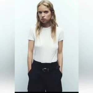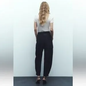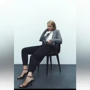 High-waisted pants with front pleats.
