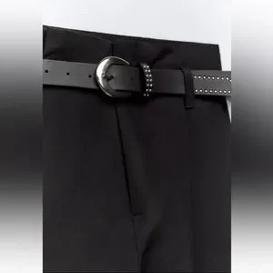 Belt with buckle and metal studs.