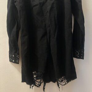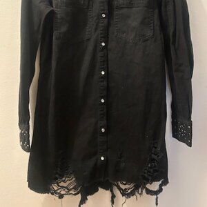 Super Cool Shirt Dress...Rich Black Distressed Denim with Faux Silver Studs