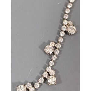 Vintage Dainty Rhinestone Necklace Silver Tone Delicate Chain 16"