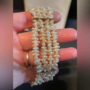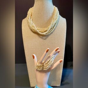 Vintage Multi Strand Rice Pearl Necklace and Bracelet Set