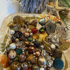 Have fun with your imagination with the selection of bead soup 🥣 with an assorted set of decorative vintage beads. Featuring a variety of colors including gold, silver, brown, and cream. Bag # 2