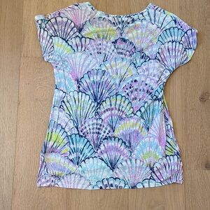 Lilly Pulitzer Women’s Multicolor Seashell Print Linen Short Sleeve Tee size xs