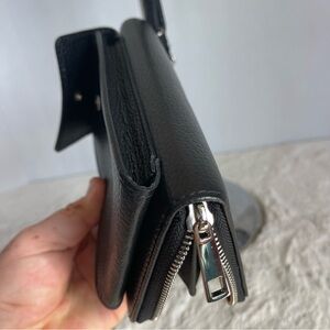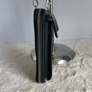 VERA PELLE Black Leather Crossbody Wallet And Phone Pocket