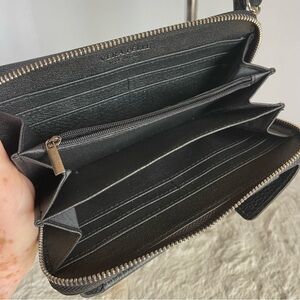 Elegant black leather wallet by Vera Pelle. Features a textured design and secure zip closure.
