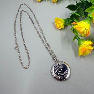 925 Gore L Sterling Silver Signed Etched Locket Pendant Necklace