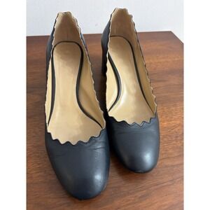 Chloe Women's Lauren Leather Pump Navy Leather Heels Scalloped Italian 38.5 8.5M