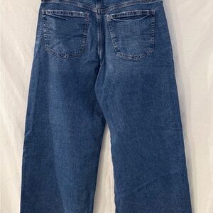 The American Eagle AE strigid Low-Rise Ultra Wide-Leg Jean in size 8 Short is a stylish denim piece perfect for any season. Made from cotton denim, these solid blue jeans feature a zip closure and a low rise for a trendy look. With a 5-pocket design and classic button accents, these jeans are both functional and fashionable. The wide-leg fit and stretch fabric make them comfortable and versatile, ideal for a casual wardrobe staple. Perfect for the modern woman looking for a trendy and comfortable pair of jeans from a trusted brand like American Eagle Outfitters.