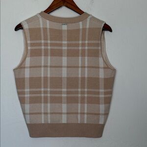 Sioni Plaid Sweater Vest Tan Cream Button Front Pockets Size Large