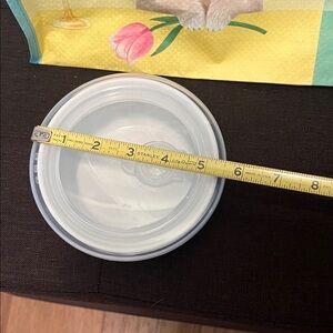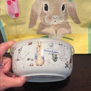 Adorable bowl featuring a bunny design. Comes with a clear lid. Perfect for snacks or storage.