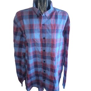 Old Navy Men's Blue and Red Plaid Casual Shirt Size XXL