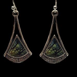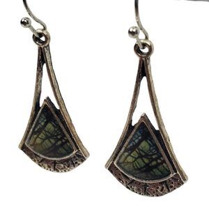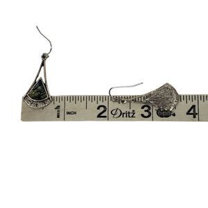 Bohemian Textured Silver Tone Dangle Drop Green Black Resin Faux Stone Earrings