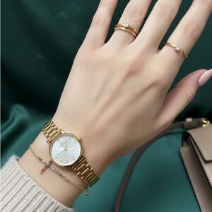 Crafted for versatility, its slender gold-tone chain offers a minimalist aesthetic that shines on its own or creates a sophisticated "stacked" look when paired with your favorite gold watch or bangles.