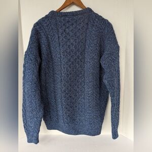 Avoca Ireland Pure New Wool Sweater Mens M Blue Fleck Donegal Cable Knit Vintage