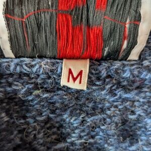 Size: Men's medium. This sweater is also suitable as a roomy women's knitwear item.