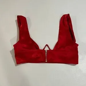 Stunning Oh Polly red satin underwire crop top, size 2 (UK 6). Features a deep plunge neckline with structured cups, adjustable straps, and a secure back zipper. Silky smooth fabric with a slight sheen for that luxurious feel. Perfect for nights out, parties, or holiday events — pair it with high-waisted pants or a mini skirt for a bold, statement look.
