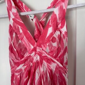 Anthropologie Postmark Pink White Abstract Print Cotton Dress with Slip Size 00P