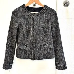 Willi Smith Black Cream Blue Tweed Size Large fits like Small Wool Blend Blazer