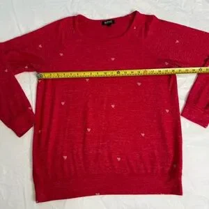 Buffalo David Bitton Heart Print Sweatshirt M Red Lightweight Knit Pullover