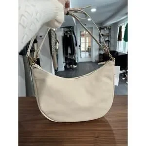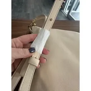 Color is Ivory (Avrio). Two adjustable and removable straps. Good hardware. Can be worn on the shoulder or crossbody. Zipper closure.