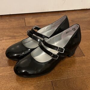 Elegant black patent leather Mary Jane shoes with a classic double strap design. Perfect for adding a touch of sophistication to any outfit. Skid resistant. Sparkly heels. Excellent condition. Shop my Closet to add to your bundle. Bundle 2 or more items and save 20%, fast shipping! Top-rated seller, Posh Ambassador. ✅️ Bundle and save on 2+ items ✅️ Smoke-free home ✅️ Fast Shipping ✅️ Offers welcome
