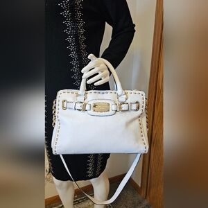 Michael Kors Ivory Satchel with Gold Details