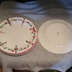 Sur La Table Nutcracker Dinner Plates with Red and Green Design