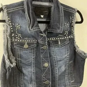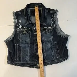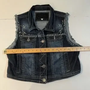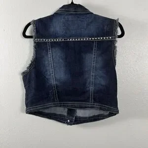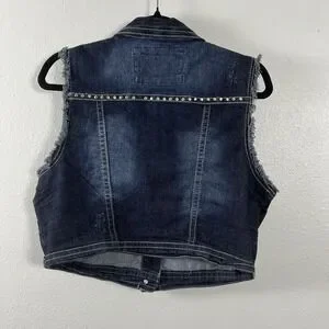 Wallflower Women's XL Dark Wash Studded Denim Vest Frayed Cropped Blue Jacket XL