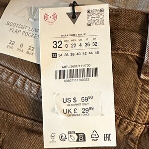 NWT Zara Women’s Bootcut Low Rise Jeans in Brown