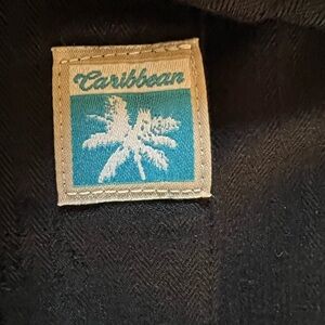 Stand out with this fun Caribbean black button-up shirt featuring a bold embroidered whiskey bottle and glass on the back with the phrase “Whiskey made me do it.” Soft rayon-blend fabric, relaxed fit, chest pocket, and clean like-new condition. Perfect for parties, vacation, bar nights, or gifting.