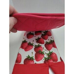 3 Piece Set 2 Pot Holders 1 Oven Mit Strawberry Pattern