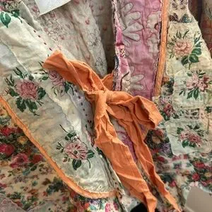 Colorful floral patchwork jacket with orange accents. Unique and vibrant design. NWT.