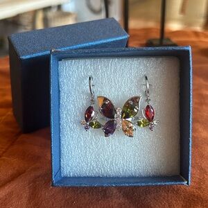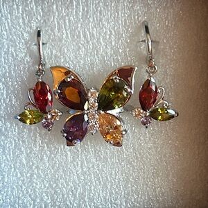 Multicolor Gemstone Silver Butterfly Ring & Earrings Set
