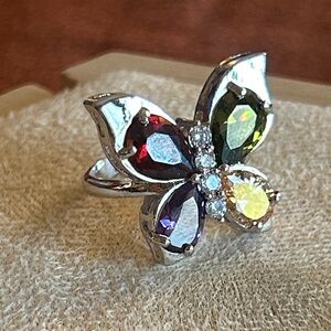 Multicolor Gemstone Butterfly Ring & Earrings Set