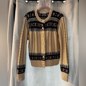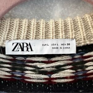 Zara size large jacquard knit cardigan cream blue green red EUC
