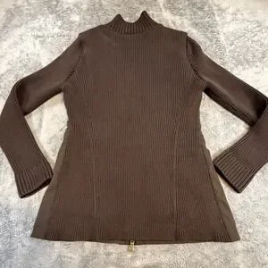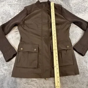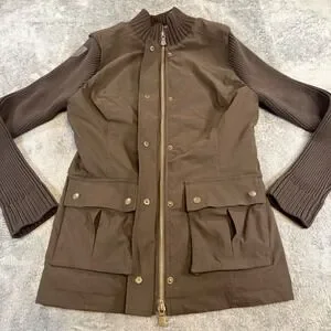 Anatomie Women Brown Field Jacket Ribbed Knit Sleeves Small Utility