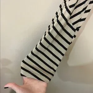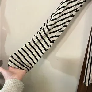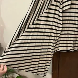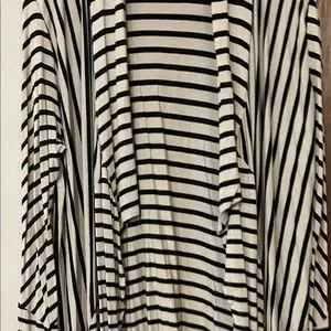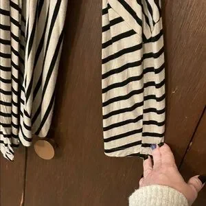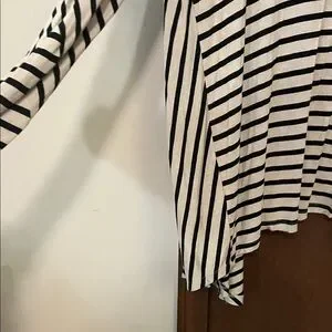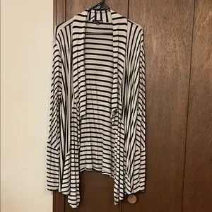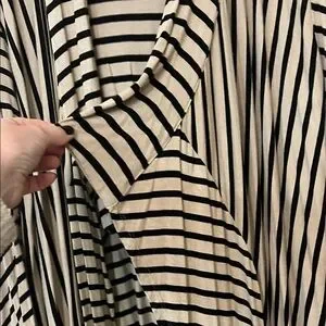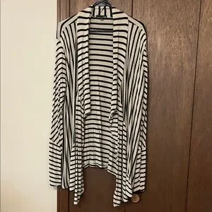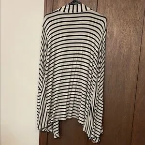 RXB Black and Beige Striped Asymmetrical Open Front Cardigan Style Top