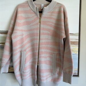 Varley Anthropologie Mayberry Blush, Zip Cardigan, Zebra pattern, small.