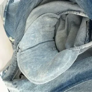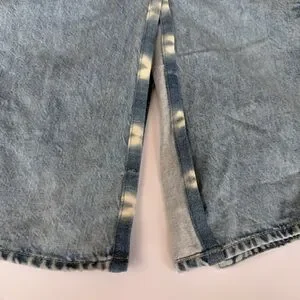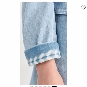Fabric: Mid-weight, non-stretch denim. Slit at back with contrast trim. Padded shoulders. Collared neck. Long sleeves. Single-breasted button placket. Welt breast pocket and flap front pockets. Shell: 100% cotton. Wash cold. Made in the USA. Measurements: Measurements from size XS Length: 29.5in / 75.0cm, from shoulder