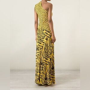 Moschino silk Yellow Animal-Print One-Shoulder Maxi Dress 10
