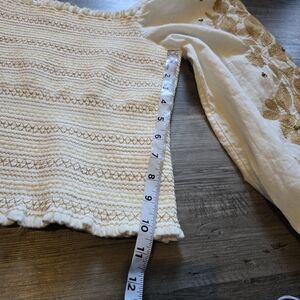 Anthropologie | White Gold Floral Embroidered Smocked Puff Sleeve Peasant Top S