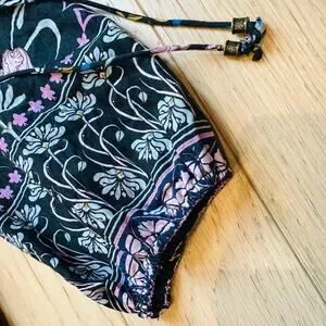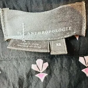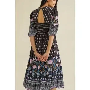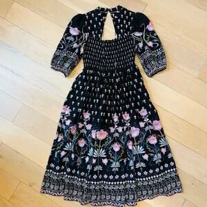 Anthropologie Dasha Smocked Midi Dress Black Floral Motif Boho Sz XS