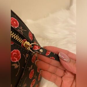 100% Authentic Kate Spade Laurel Way Hazy Sammy Floral Rose Back Pack Purse: Practically new, used only a couple of times for 1-2 hours. Features include a zip closure, 14-karat light gold plated hardware, zip pocket on the front, interior zip pocket, and multifunction pockets. Measurements are approximately 9" (L) x 9.5" (H) x 4" (W) at the bottom. NO FLAWS TO MENTION.