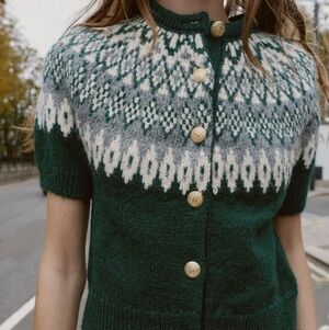 New Zara Short Sleeve Jacquard Knit Cardigan 6427/125
