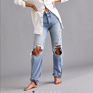 Stylish light blue jeans. Distressed design. Relaxed fit. Perfect for casual wear.