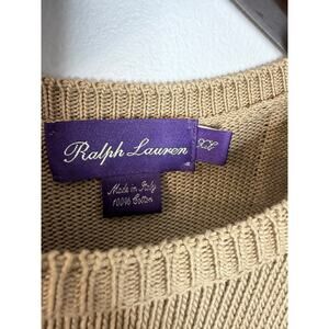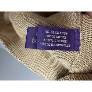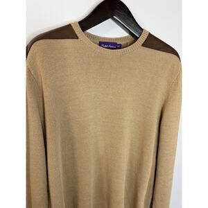 Ralph Lauren Purple Label Sweater Cotton Leather Shoulder Patches Tan Men's XL