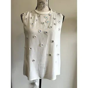 Anthropologie Vanessa Virginia Sheer Ivory Daisy Appliqué Blouse Shirt S