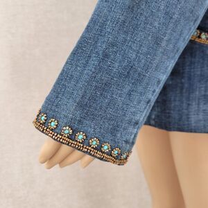 Chico's Denim Jacket with Turquoise and Bronze Color Beading Western Boho