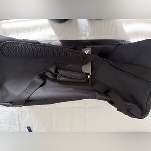 Stylish black duffel bag by Adidas. Ideal for gym or travel. Durable and spacious design.
