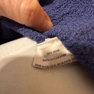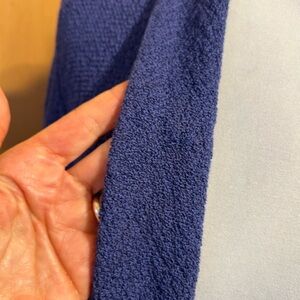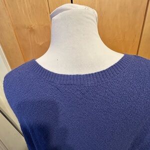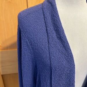 Plus Size 3X Eileen Fisher 2-piece sweater set. Royal blue 100% Italian wool, textured loose knit. Cardigan (no closure) and sleeveless shell. Beautiful drape. Loose fit. No pockets. Shawl collar and shirttail hems on cardigan. Drop waist and shaping seams on back. Shell has a straight hem.